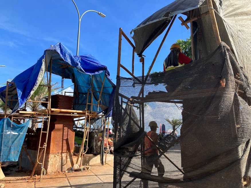 クタ・レギャンのビーチには歩道ができていました。空港の方からスミニャックの方までつながっているみたいです。ビーチへ出るところのゲートも工事をしてます。東南アジアの工事って、手作業感が強くていつ終わのか、進んでいるのかいないのかわからない感じだけど、ちょっとずつちゃんとすすんでるんだなぁ。時間はかかるし、日本みたいにカチッとしっかりしあ感じはないけど、これはこれでまた良いのかも。町に溶け込んで残ったもん勝ちだし。
