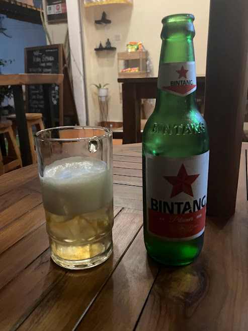 帰国前日は、宿のポーチでビール。日陰は涼しくてビールが美味い。