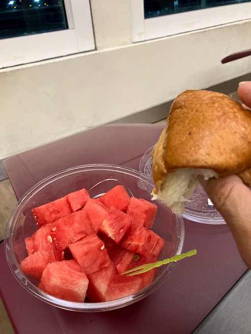 いよいよ帰国の日となりました。宿からは歩いて10分なので早起きしてぶらぶら歩いてチェックインです。空港の駐車場のところにコンビニがあるので立ち寄ってパンとスイカを購入。ゲートで食べよう。飛行機はひたすら寝たいところだけど寝れるといいなぁ。
