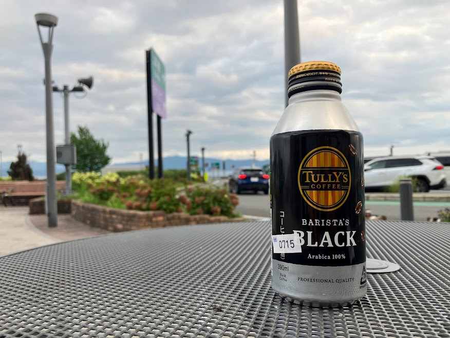 帰りの高速で眠くなったので休憩。遠くに海が見える。夏の海はのた~っとしているみたいです。海がみえるのはいいね。缶コーヒーは、いつもこのタリーズのBarista’s Blackにしてしまいます。アラビカ100%で、キリマンジャロ10%、ブラジル10%、モカ10%だそうです。バランスがいいのかな。美味しいです。
