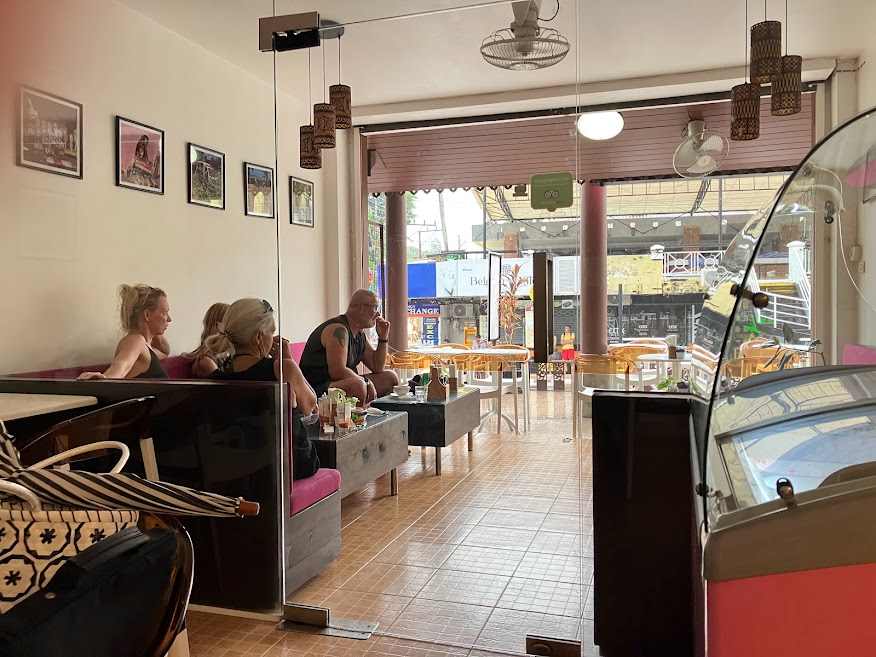 サクッと海から上がったあとは、みんなでカフェへ。娘のチョイスでItalian Jobというお店にやってきました。全員パソコン持って思い思いの時間を過ごしているという不思議な絵ではありますが、おしゃれなお店で頂くMochaは美味しゅうございました。値段は日本と変わらないですね。気が付けば、外は雨が結構ふってました。