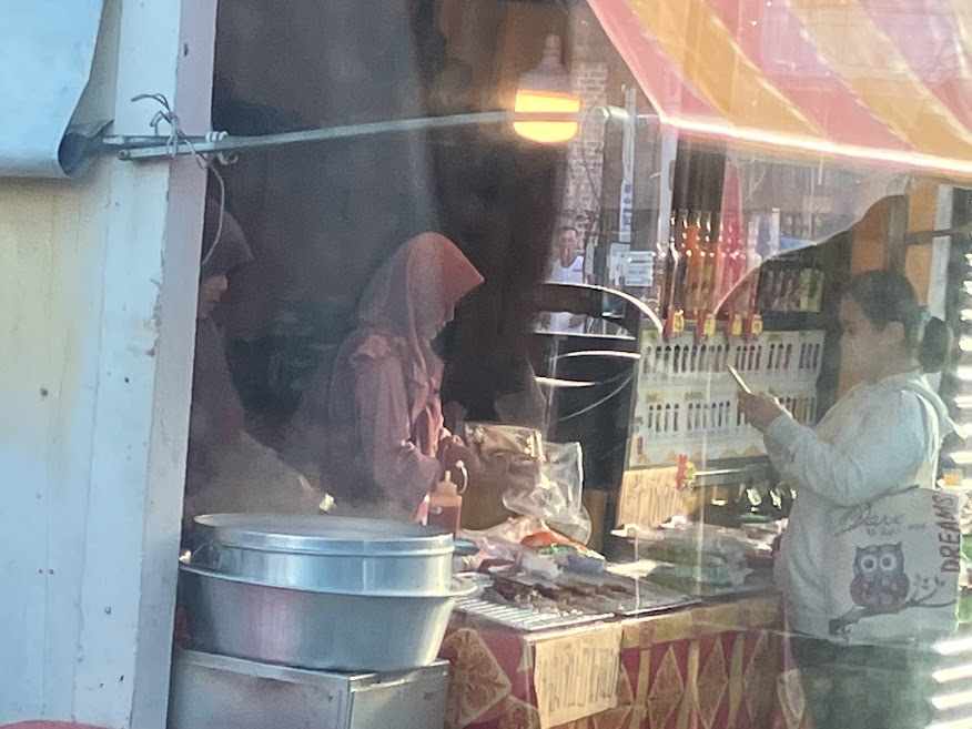 途中のバス停付近では、何やら朝から美味しそうなものを売ってます。