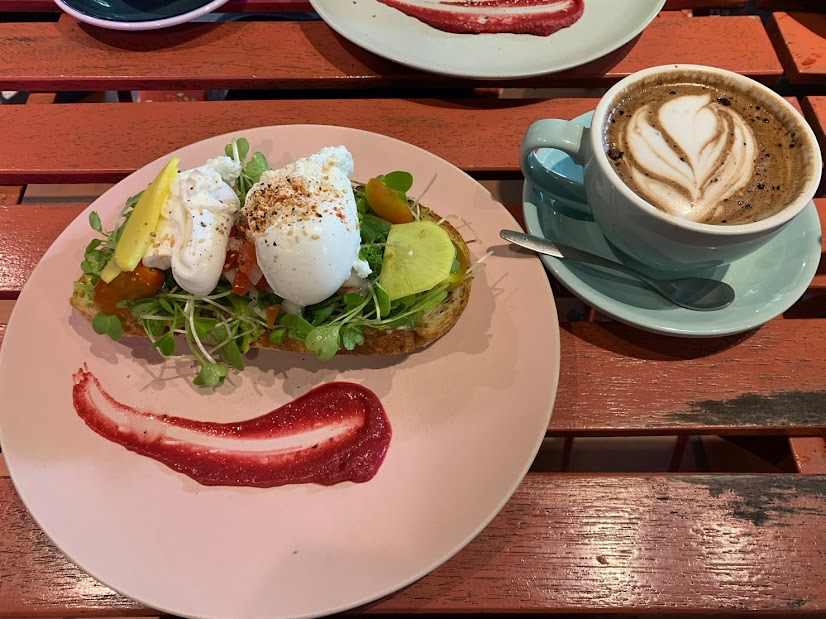 ホテルの近所に、ロージーズカフェという隠れ家みたいで素敵なカフェがあって、おしゃれなブランチを楽しみました。