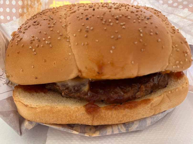バンズが四角で、肉厚パテの上にベーコン・チーズ・ポテトサラダのようなポテトフィリングが乗っている構造で、ポテトフィリングが前面に出てくる感じでした。美味しいけど、私はもっと肉肉しい方がいいなぁ。(写真がうまく取れていないですね…)