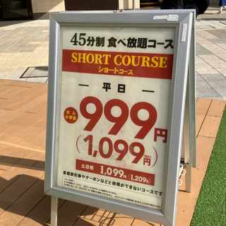 先日映画を見たときに気になっていたのですが、平日のショートコース食べ放題が999円があるらしいという看板が誘惑してきます。
