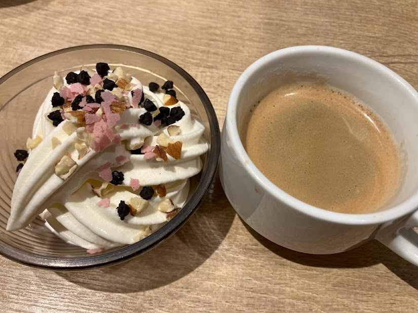 締めはソフトクリームとエスプレッソ。エスプレッソは2杯分入れて、エスプレッソ・ドッビオだな、と一人悦に入ってました。