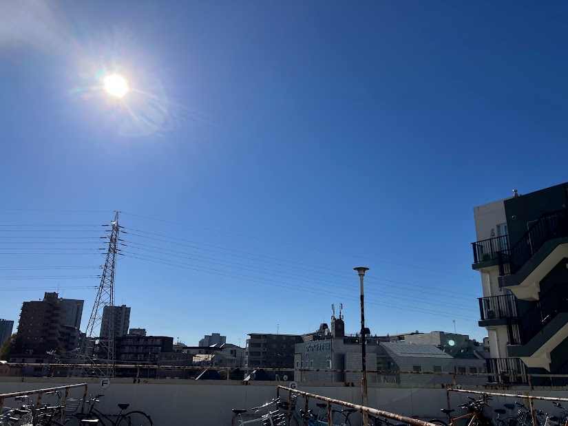 冬の晴れた日って感じですね。恐ろしく天気が良いです。空は青い。太陽は低めなので眩しい。