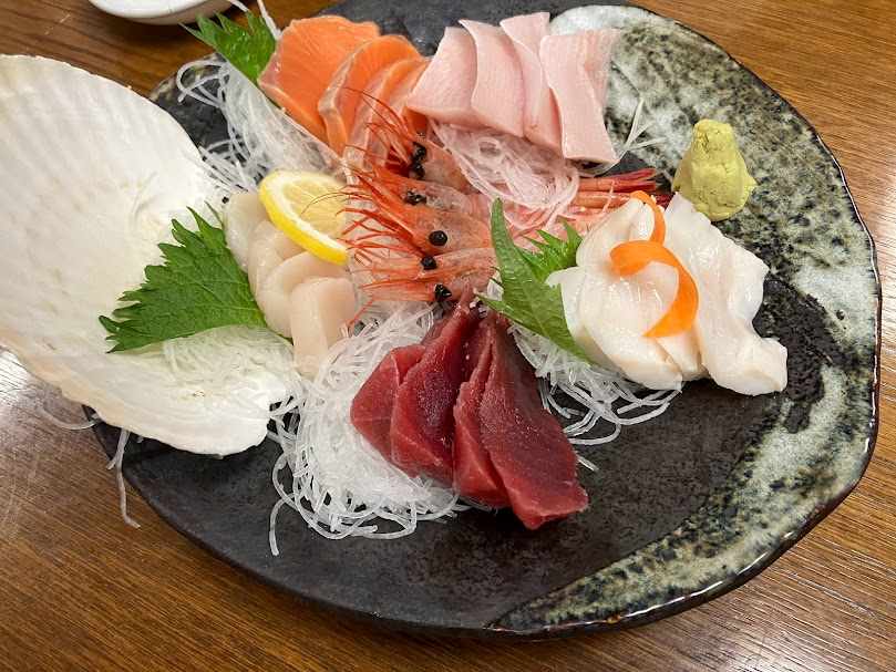 まずは、刺身盛り合わせ、ざんぎ、ホッケの開き、豆腐サラダで乾杯です。