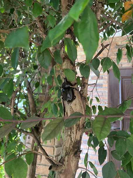朝コーヒーを淹れようとしていると、2階から「ベランダにカブトムシがいる。」と妻の声。見に行ってみると、立派なカブトムシが転がっていた。