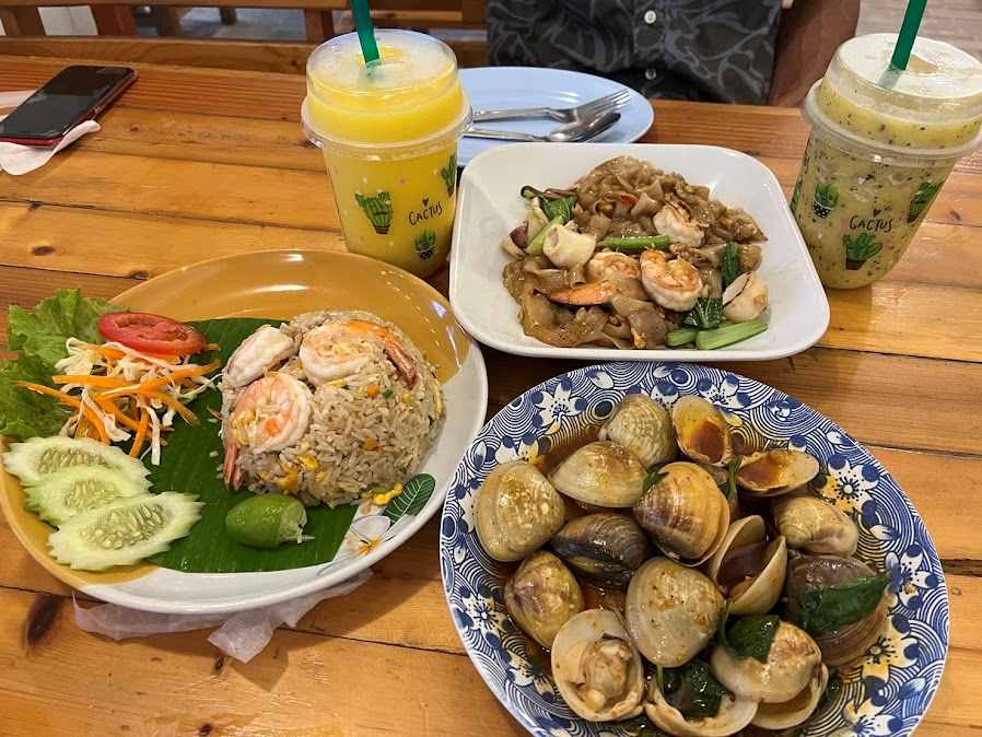 今回は、スチームしたスズキ、あさりのしょうゆ蒸、空心菜、チャーハン、汁なし麺、マンゴースムージー、パッションフルーツスムージーをオーダー。